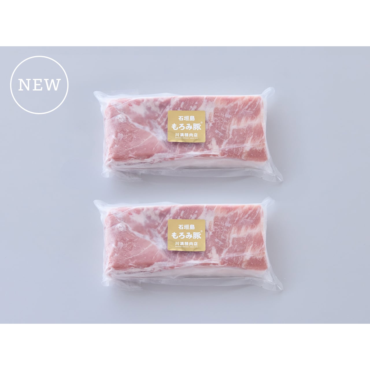 川満精肉店の「皮付き三枚肉ブロック」は、もろみ豚の貴重な皮付きの三枚肉を使用。