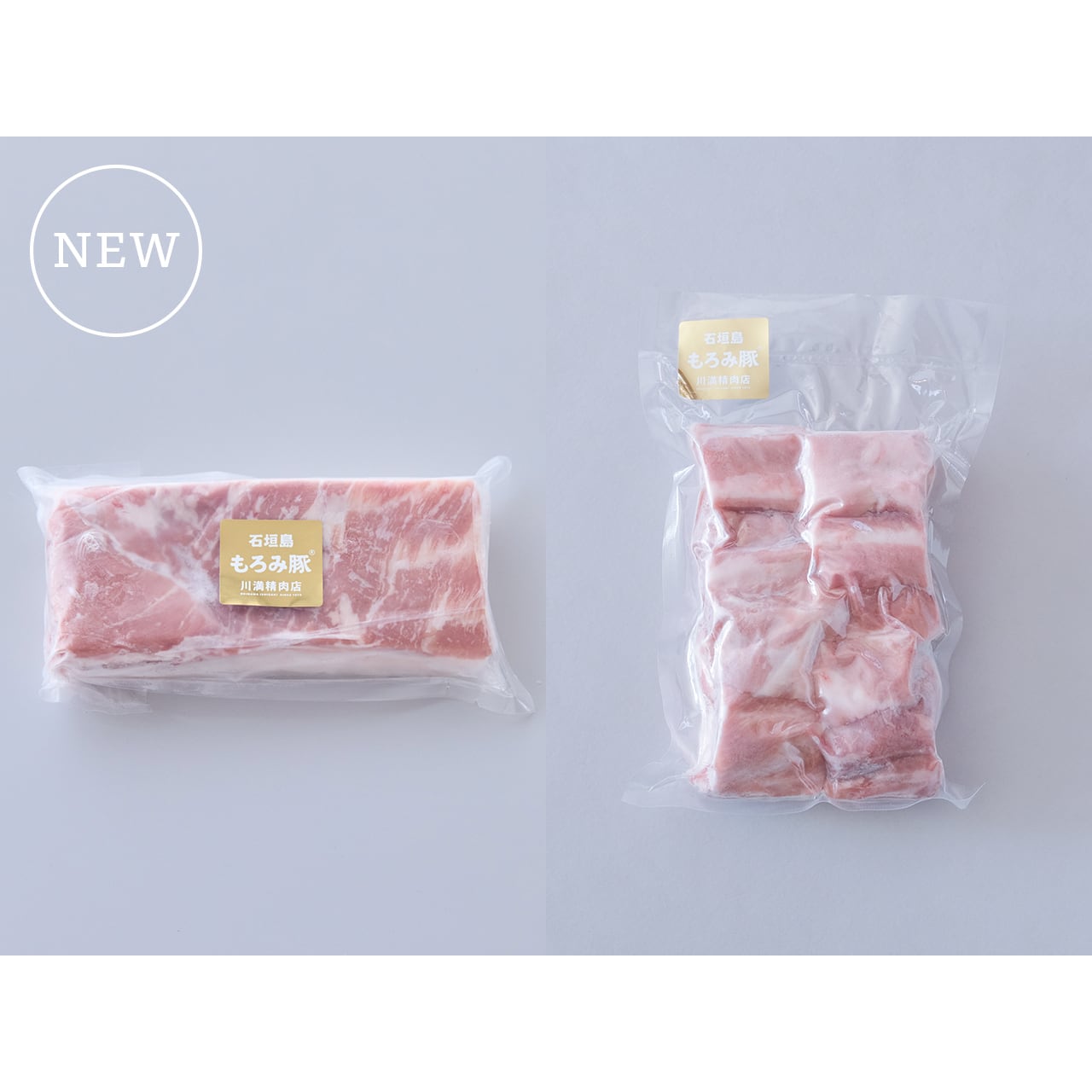 川満精肉店の「皮付き三枚肉ブロック」は、もろみ豚の貴重な皮付きの三枚肉を使用。