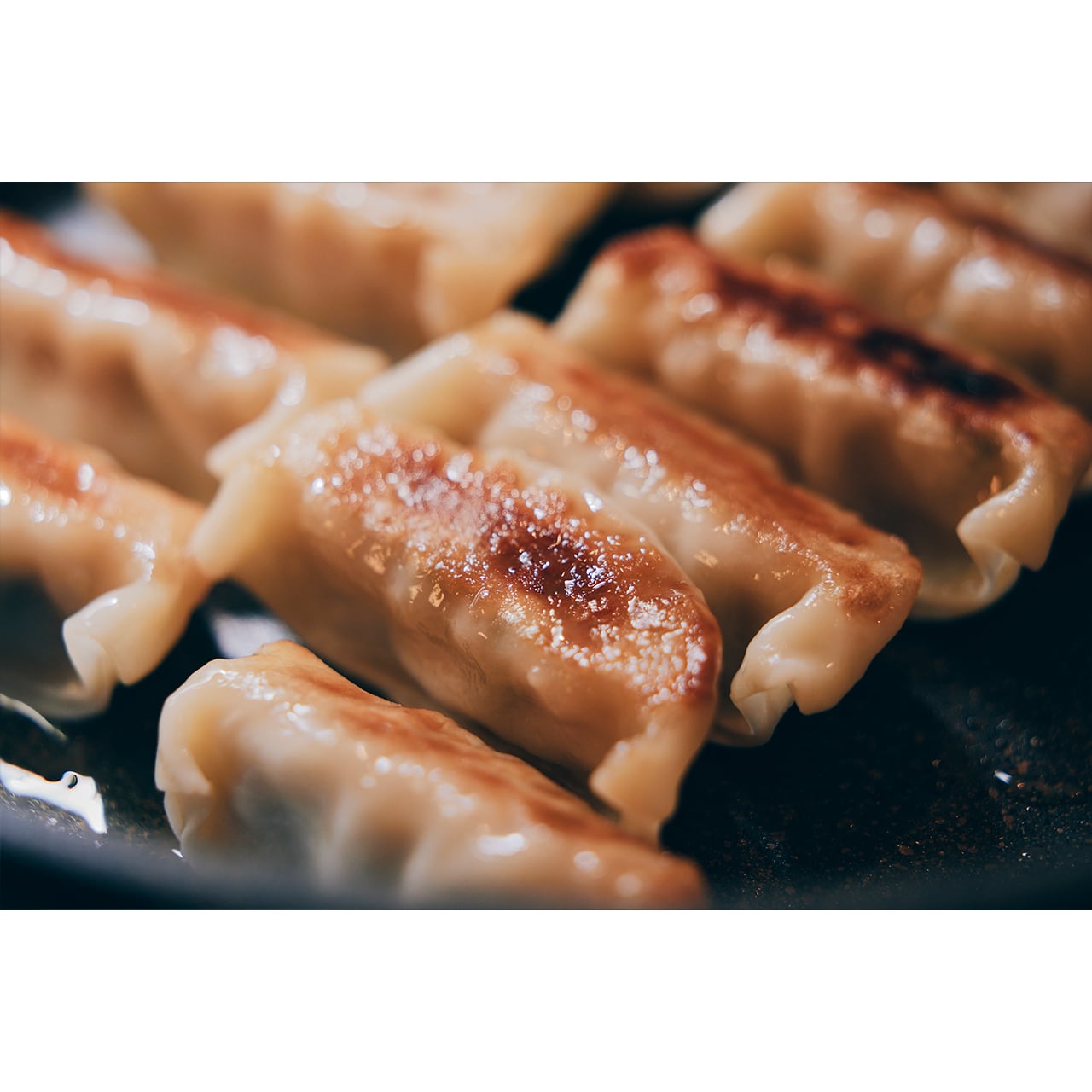 【原材料名】野菜(キャベツ、玉ねぎ、白菜、にんにく、にら、しょうが)、豚肉(国産)、醤油、食塩、調合ごま油、香辛料、皮(小麦粉、食塩)/増粘剤(加工デンプン)、調味料(アミノ酸)、トレハロース、酒類、(一部に小麦・大豆・ごま・豚肉を含む)